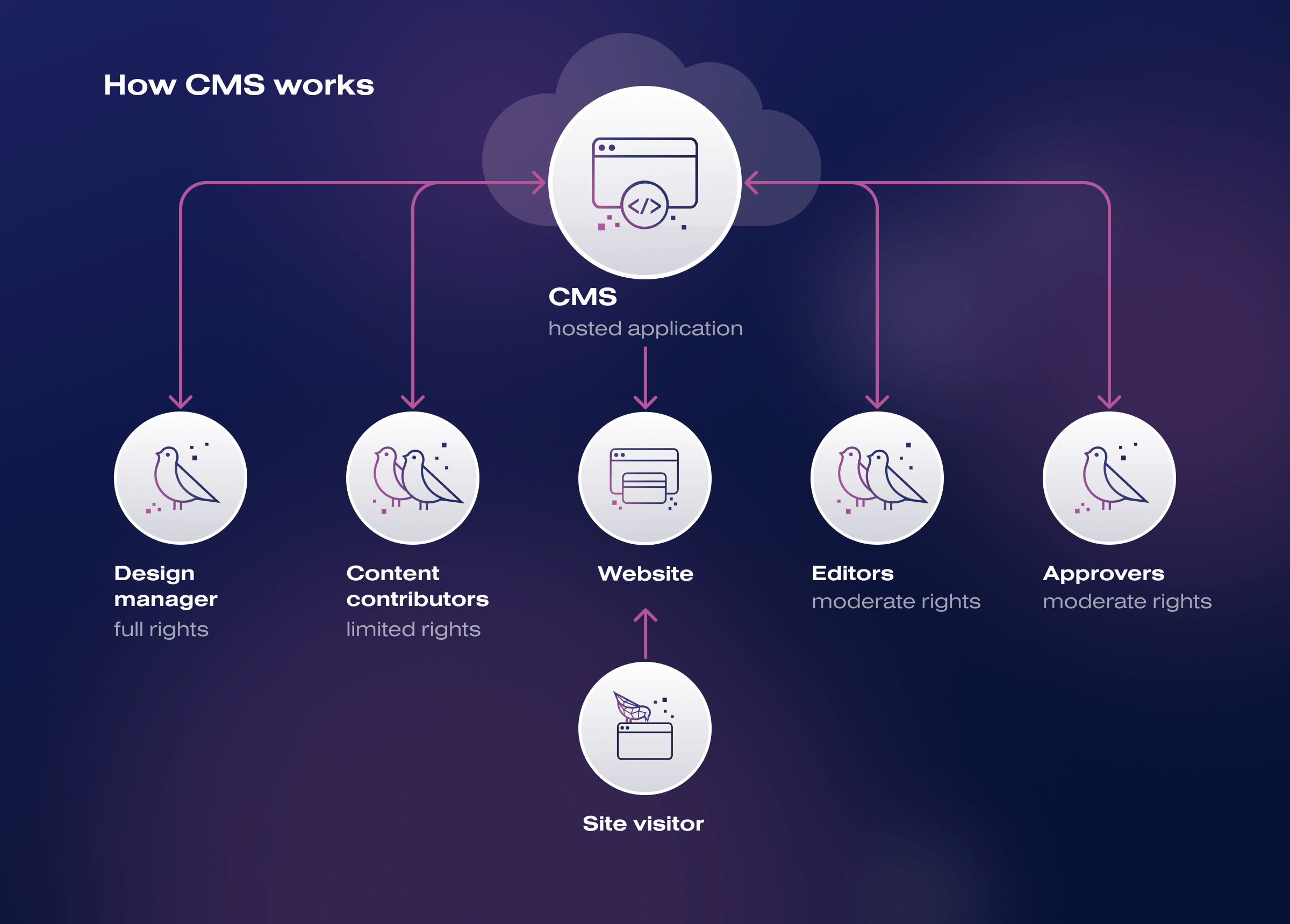 A CMS allows you to design and manage websites and content with minimum technological overhead, focusing on creating better content rather than functioning as a project or traffic manager. A CMS helps businesses to manage and share their content without investing in a full-time content production team by providing an easy and cost-effective alternative for content management.