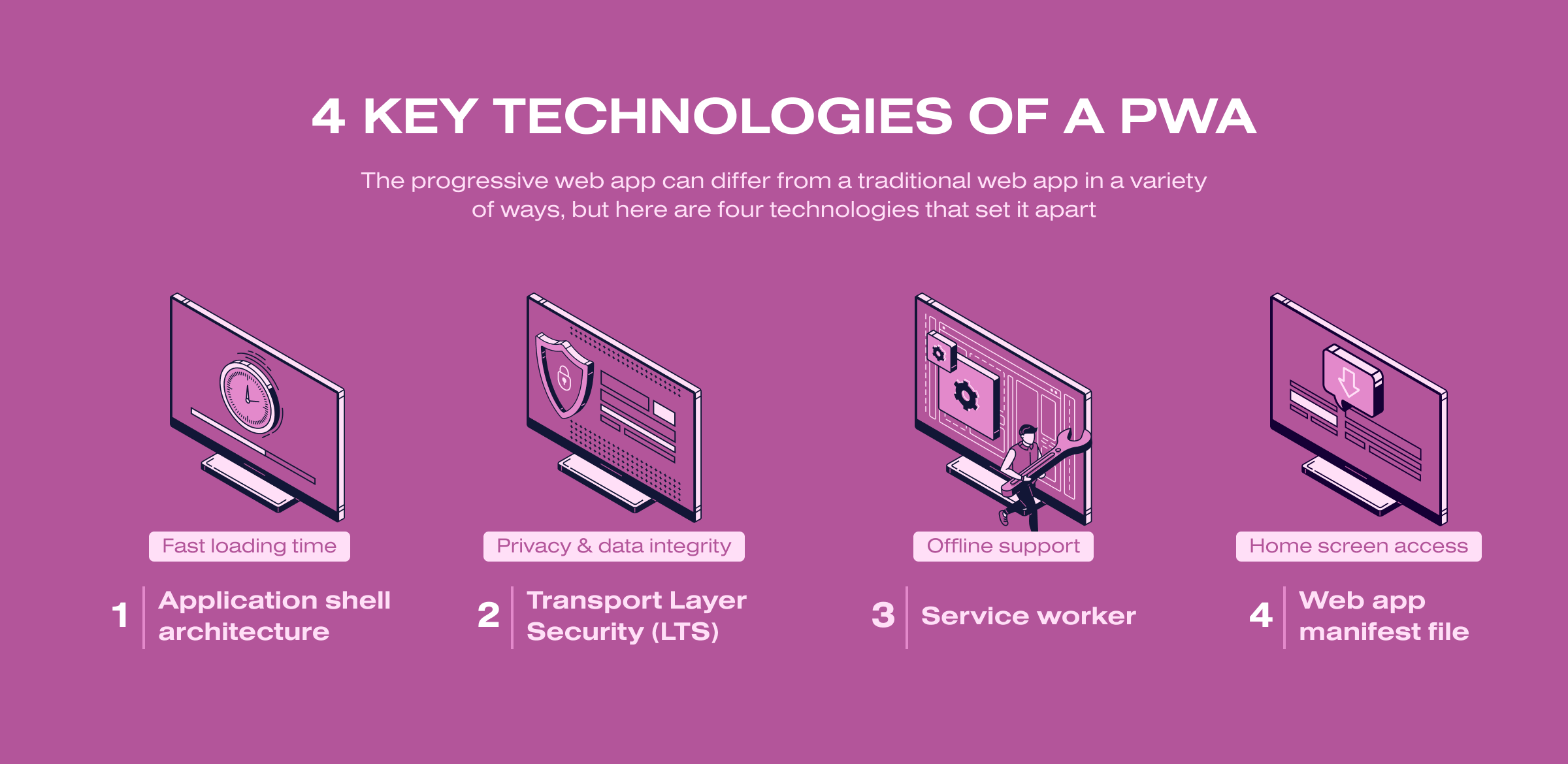 PWA is developed with the help of special technologies and can work without an internet connection. Such custom applications are available on all devices and adapt to any phone or computer screen width. People can install them on their smartphone’s home screen, send notifications, and use it as a full-fledged application.
