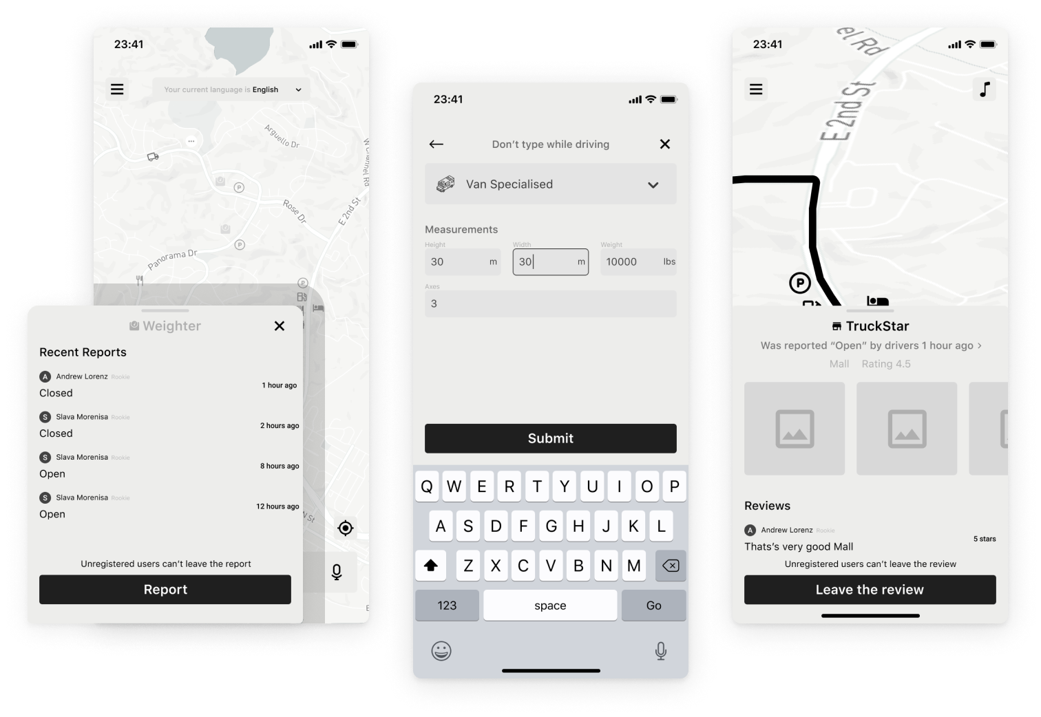 During these several weeks of working with the client during the discovery phase, my team and I were able to fully immerse ourselves in the client’s business and gain a lot of insight into the market where the product will be launched. It was very informative to talk to truck drivers from the United States and actually travel with them, albeit remotely. This allowed us to identify key pain points and design a solution that would best suit the end users. A major challenge for us was to analyze existing mature applications that have a wide range of functionality and many technical integrations with many services.